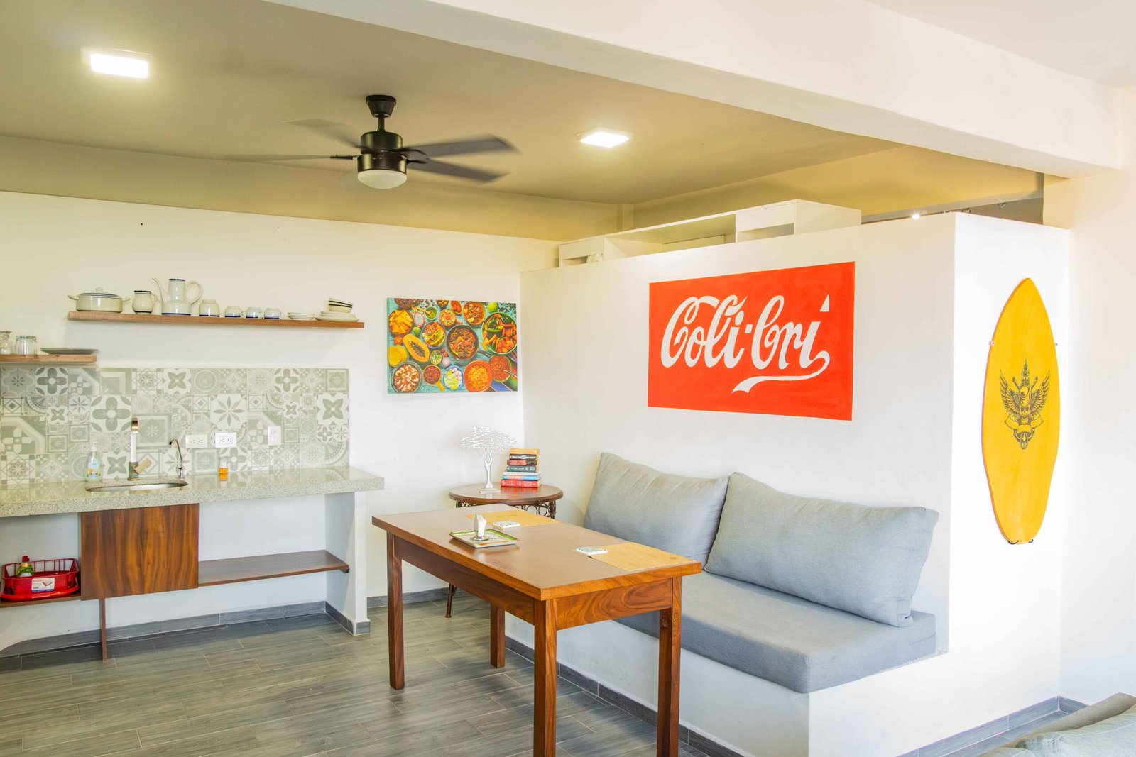 Vimos periquitos y muchas otras aves hermosas en los árboles de los alrededores, ocasionalmente vimos ballenas saltando en la bahía y los fuegos artificiales nocturnos del barco pirata. La cocina renovada estaba bien equipada con todo lo necesario para preparar comidas, así como con agua filtrada. Disfruté tomando mi café matutino y mis comidas en la gran mesa de la isla mientras disfrutaba de la vista al mar.